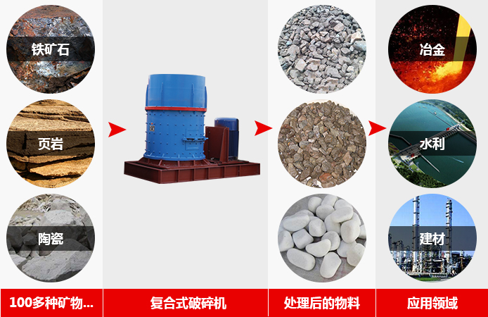 復合式破碎機簡稱復合破,廣泛適用于水泥廠的生料、熟料細碎作業,同時也可用于白云石、焦寶石、鉛鋅礦、蛇紋石、高爐渣、煤矸石、磷礦石等中等硬度物料的細碎作業,特別適用于硬質石灰巖、白云巖、花崗巖、玄武巖等人工造砂或高速公路路面石料的加工破碎。